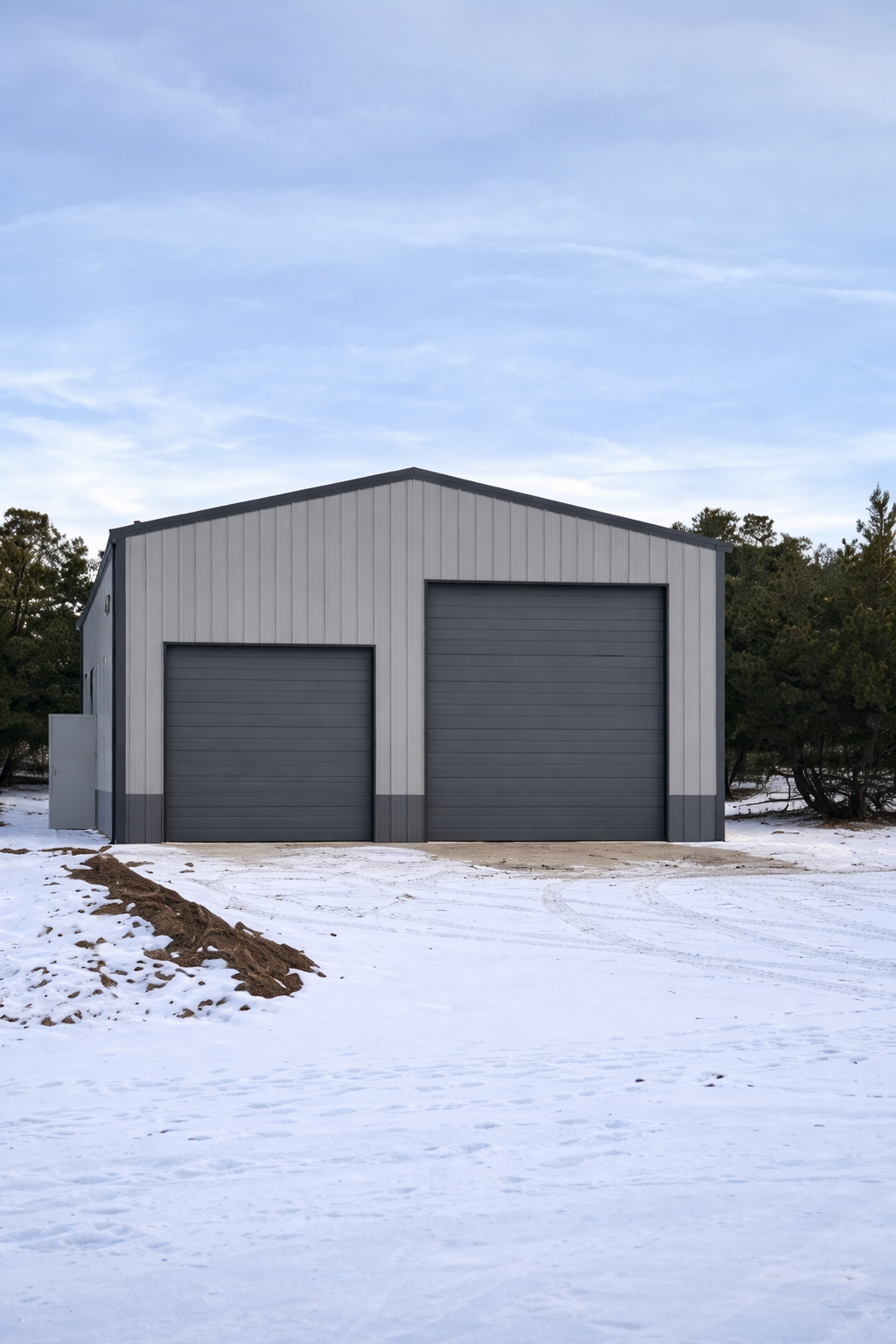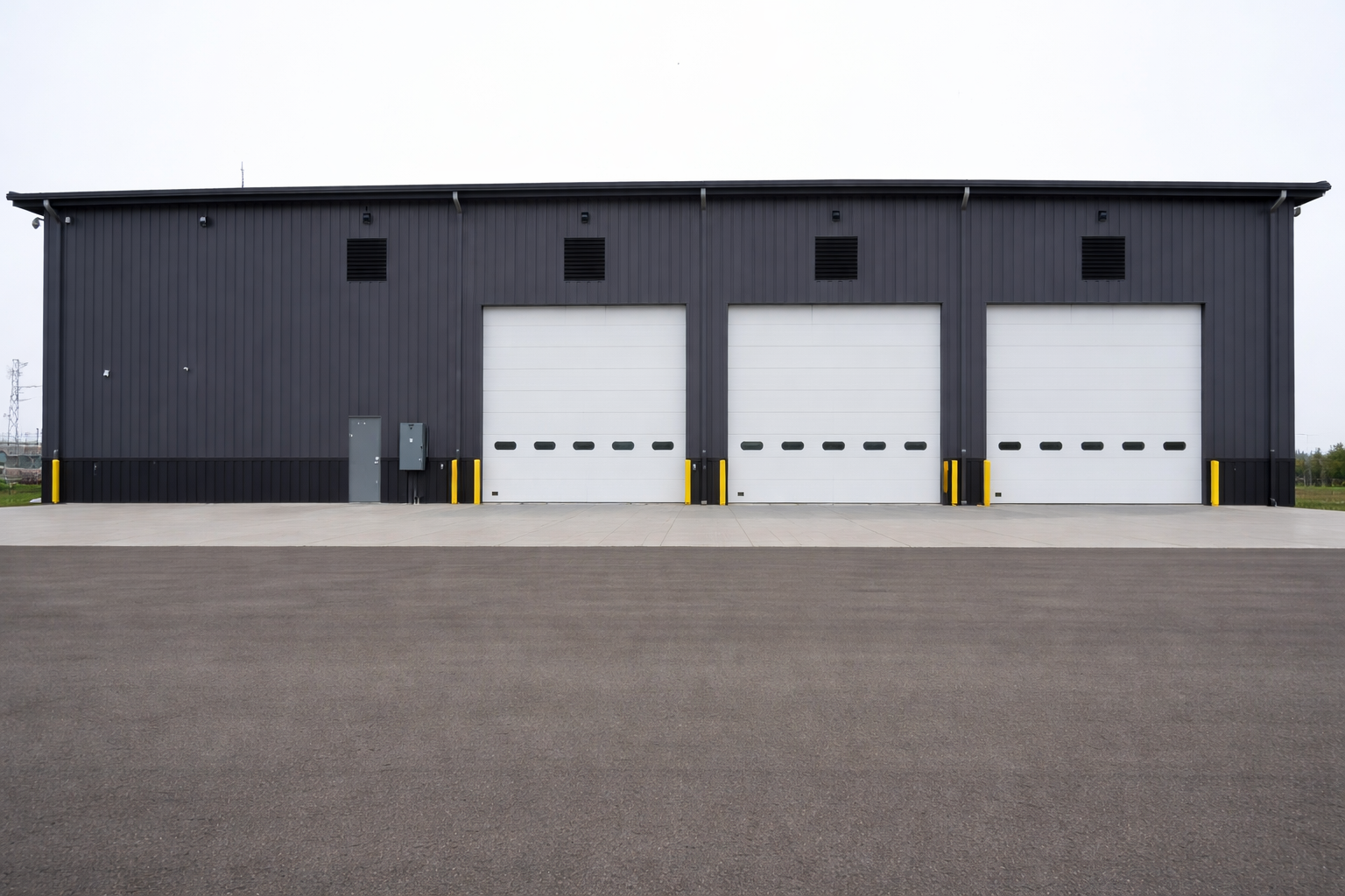 Steel buildings designed for heavy equipment storage and large vehicle access.